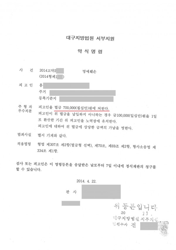 2. 대구지방검찰청 서부지청 2014형제 1****호