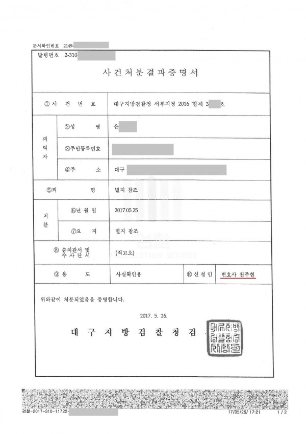 6. 대구지방검찰청 2017형제 3****호