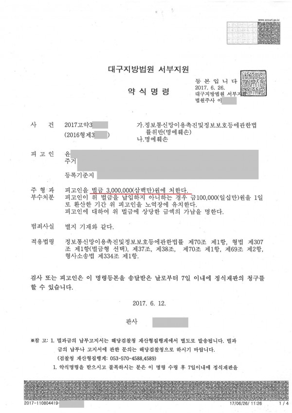 ▷ 정통법 위반(명예훼손), 업무방해, 신용훼손 (고소한 사건)